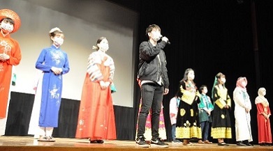まずは、文化交流の大切さを表現するものとして、日本の伝統芸能「南京玉すだれ」と民族衣装を紹介する「世界のファッションショー」が披露されました。